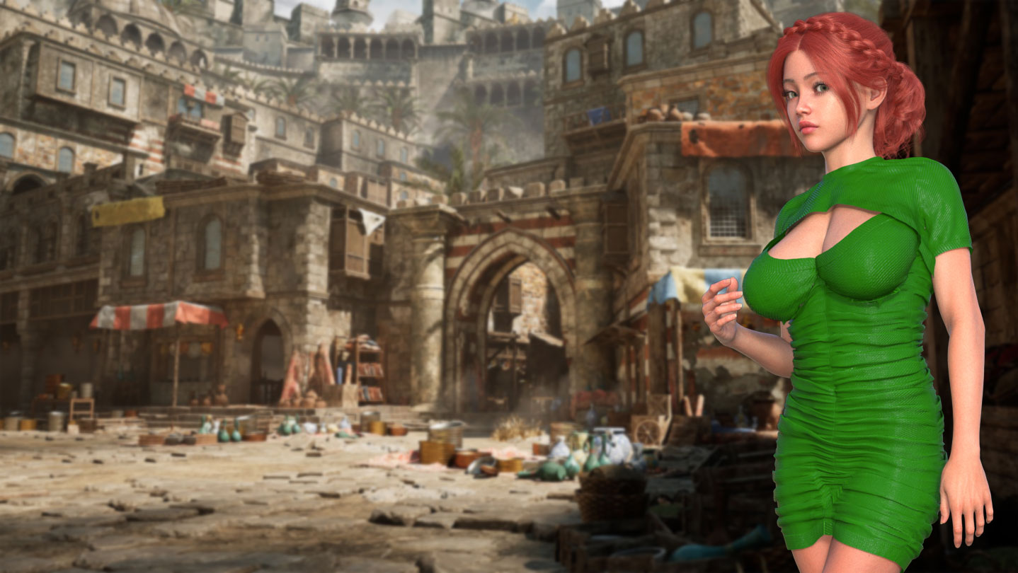 Explore a realistic Arabian bazaar inspired by Middle Eastern culture — a living maze of narrow streets, vibrant markets, and hidden chambers of pleasure.