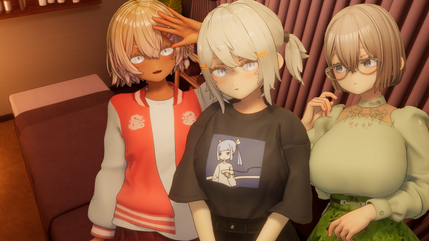 This game contains: sensitivity-enhancing oils, group sex, nudity, explicit exposure, sex toys, oral sex, and anal sex.