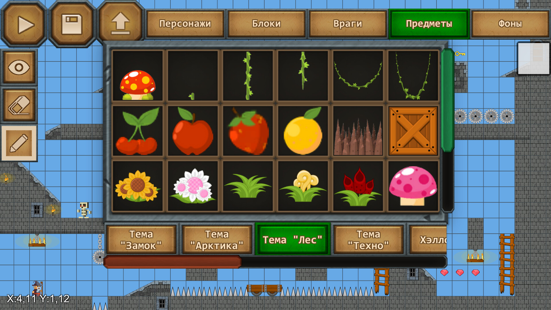 Создание уровней в этой игре - очень увлекательный и несложный процесс. Вы просто рисуете объекты в клеточках, расставляете блоки, предметы и персонажей.