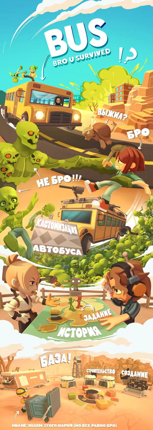 Прокатись с друзьями сквозь апокалипсис!‎ BUS: Bro U Survived – это кооперативное сюжетное приключение с собственным автобусом! Бей зомби, собирай ресурсы, помогай другим выжившим. Сможешь ли ты узнать правду о начале эпидемии и решить судьбу острова?