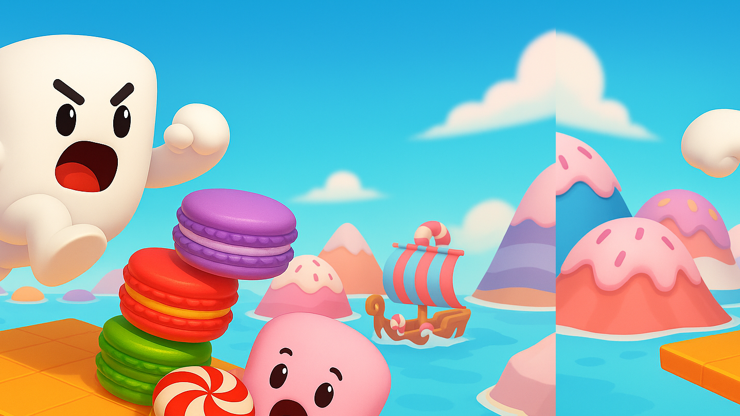 Macaron Mash is a cute 3D candy puzzle where marshmallow players push, match, and pop colorful macarons on a shared arena. Play solo or in sweet 2-player duels filled with sugar chaos and pastel fun!
