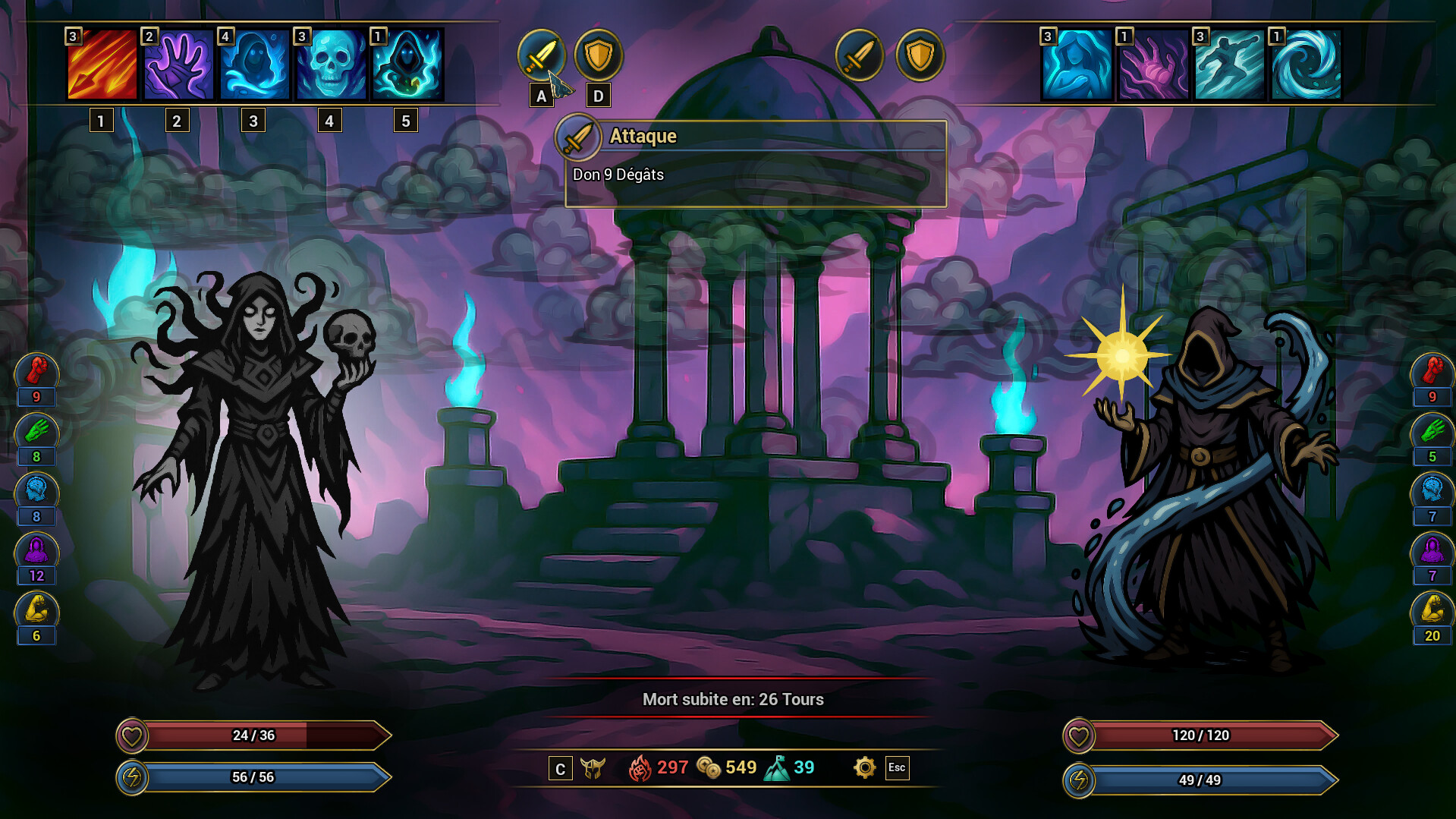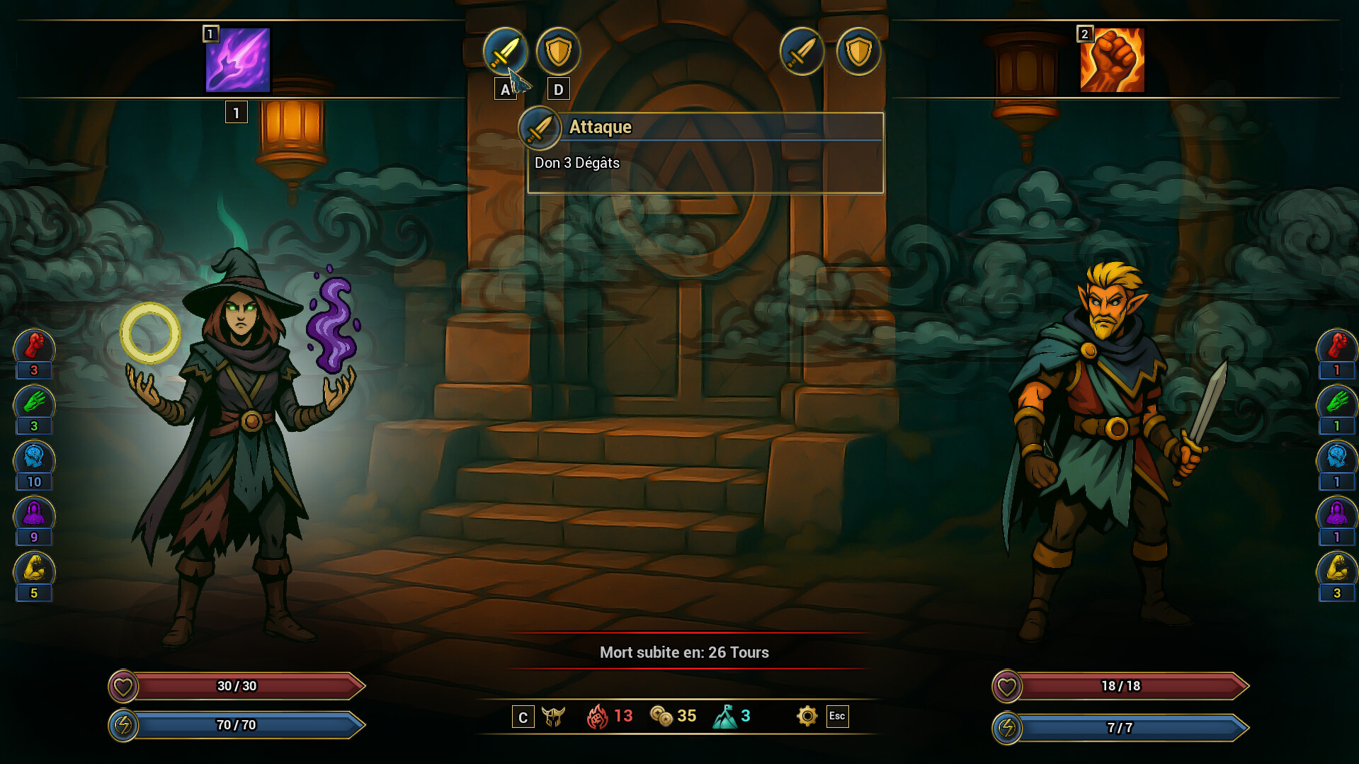 RPG roguelite avec combats 1c1 au tour par tour. Chaque voyage se termine par la mort, mais chaque mort confère du pouvoir. Développez vos héros, découvrez des secrets et brisez le Sceau du Destin.