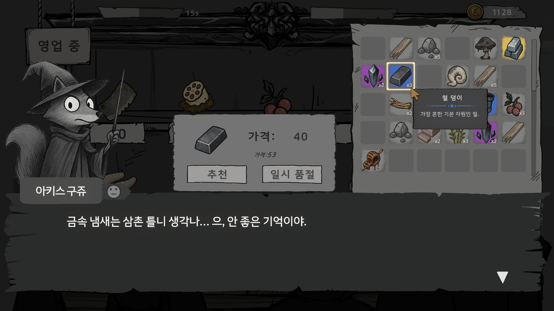 이 게임은 가벼운 로그라이트 + 가게 운영 게임이야.