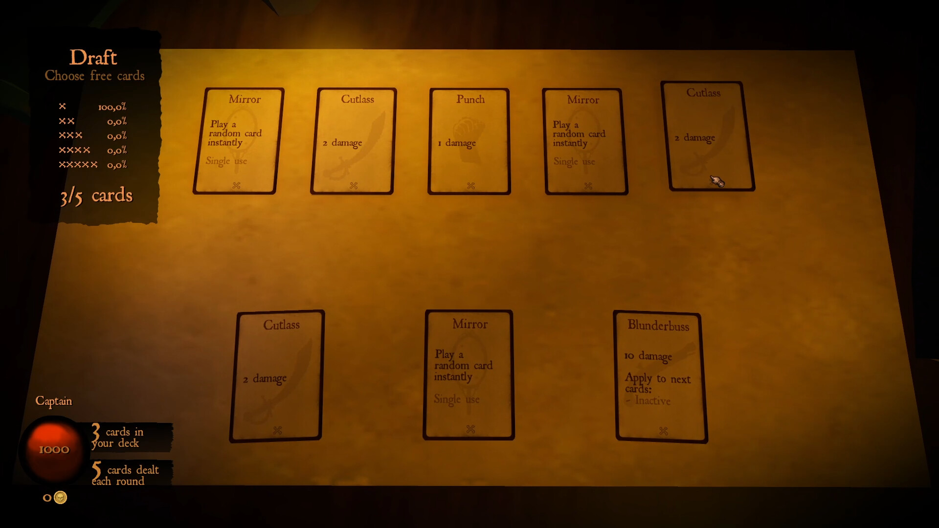 Mutiny is a short roguelite deckbuilder set aboard a pirate ship. Battle your crew during card-based combat. Build your deck, improve your stats, and rise through the ranks to regain your position as captain.