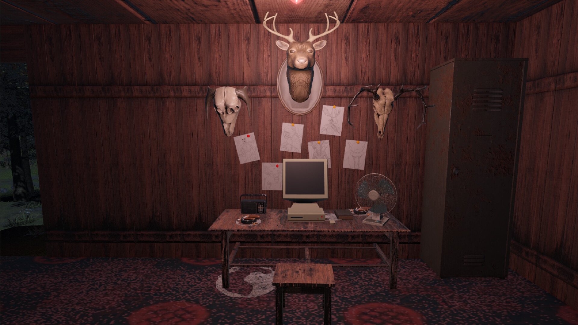 你将待在一间小小的控制室里,通过监控摄像机观察整片土地,管理有限的电力,并设法阻止那些在外游荡的生物靠得太近。有些在黑暗中徘徊,有些会突然出现,而且它们各自的行为都不同。为了让它们保持平静,你必须给它们提供血、肉或兽皮,否则它们的饥饿就会转向你。