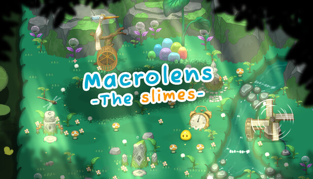 Macrolens: The Slimes simulates a camera’s perspective watching a slime in a small garden corner. You can control the yellow slime, move around, and play mini-games to collect Earth Energy.