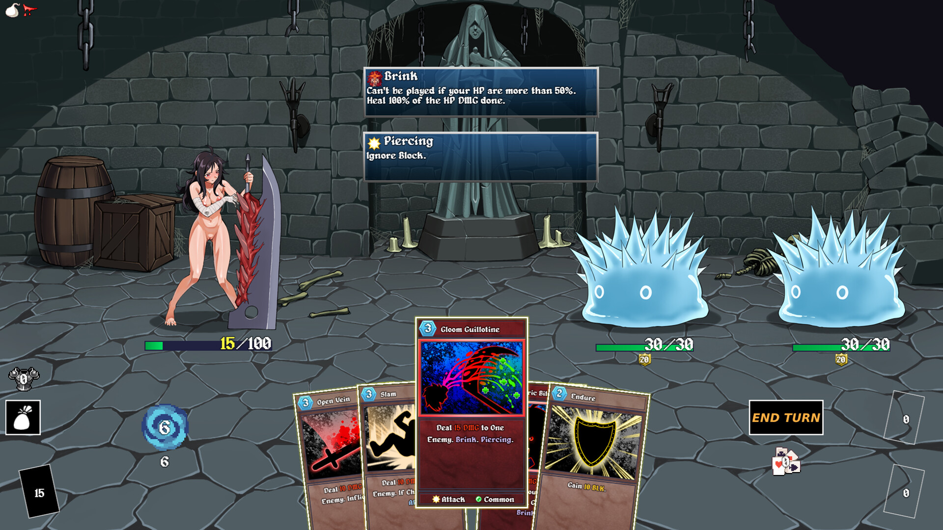 The game plays like a dungeon crawler with cards. You will not lose your cards after a run, so you'll be able to keep on buffing your own deck with new and powerful cards. This is also an adult game, so characters may lose their clothes or get into some pretty dirty situations.