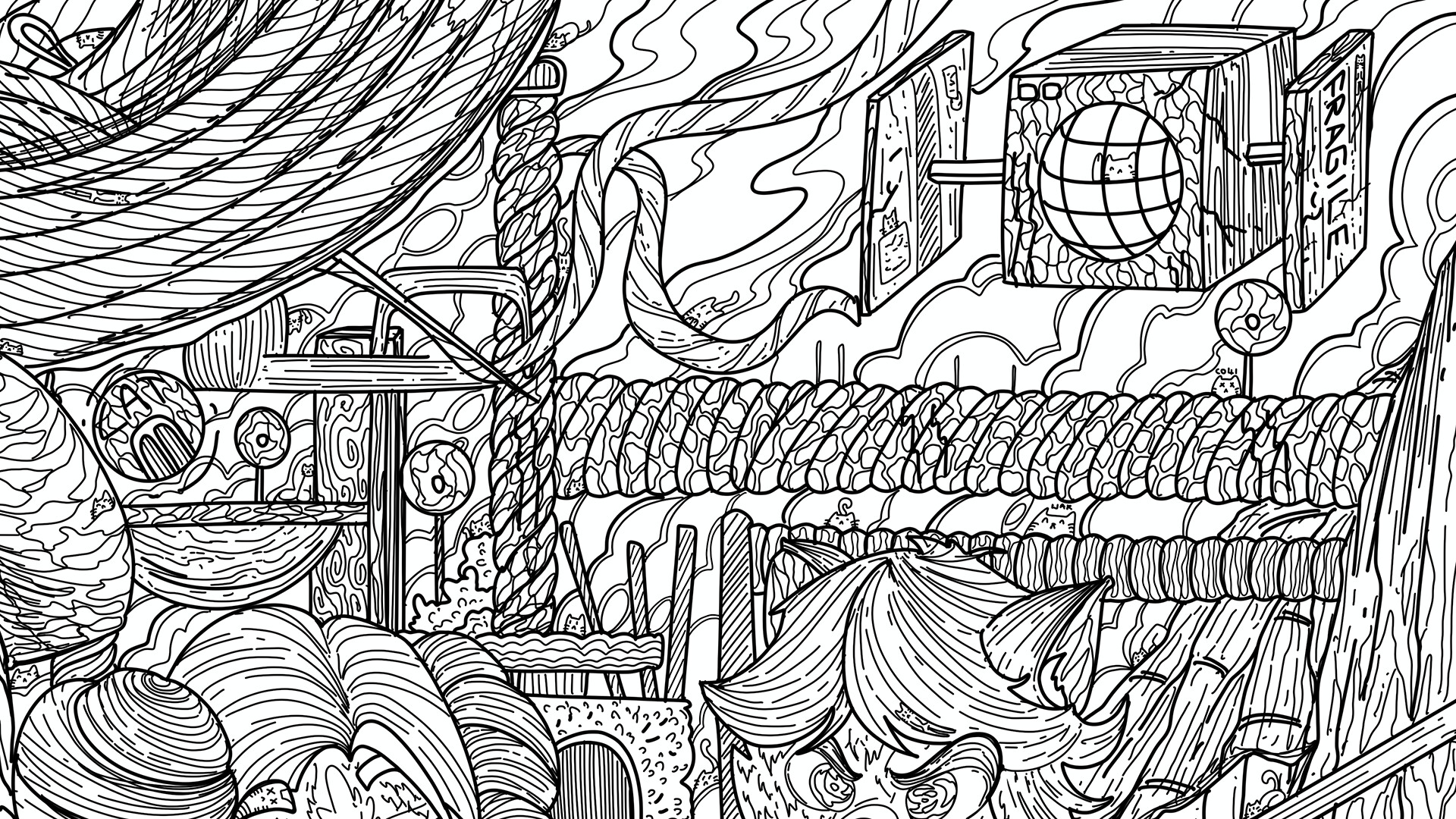 Ga mee op het schattigste avontuur in een wereld vol katten! Ontdek de charmante met de hand getekende illustraties van speciale thematische locaties terwijl je op zoek gaat naar 100 verborgen schattige katten.