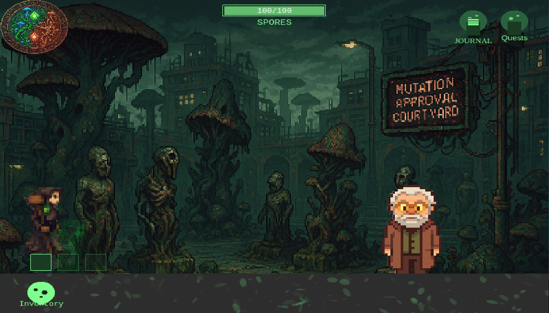 There is no combat. Only language, spores, and consequence.