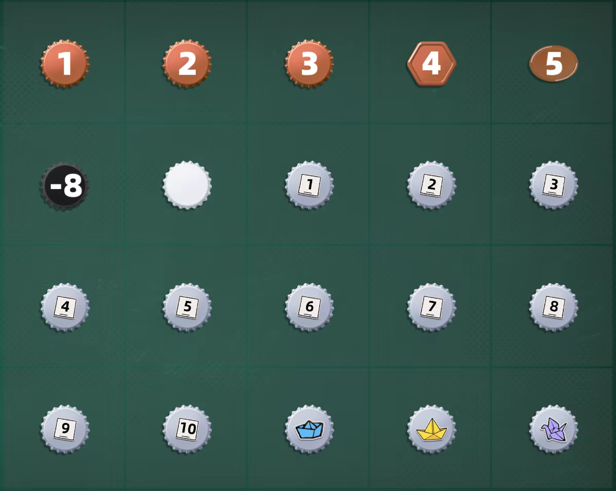 这不是简单的瓶盖游戏。每一局都需兼顾瓶盖的物理操作(如角度计算、力度控制)与类Rogue的策略抉择——不同的桌面、随机刷新的瓶盖、有限的次数、不同的盒子、瓶盖进盒后的位置,让你在每一轮都需重新规划路线,平衡「短期得分」与「长期构筑」。
