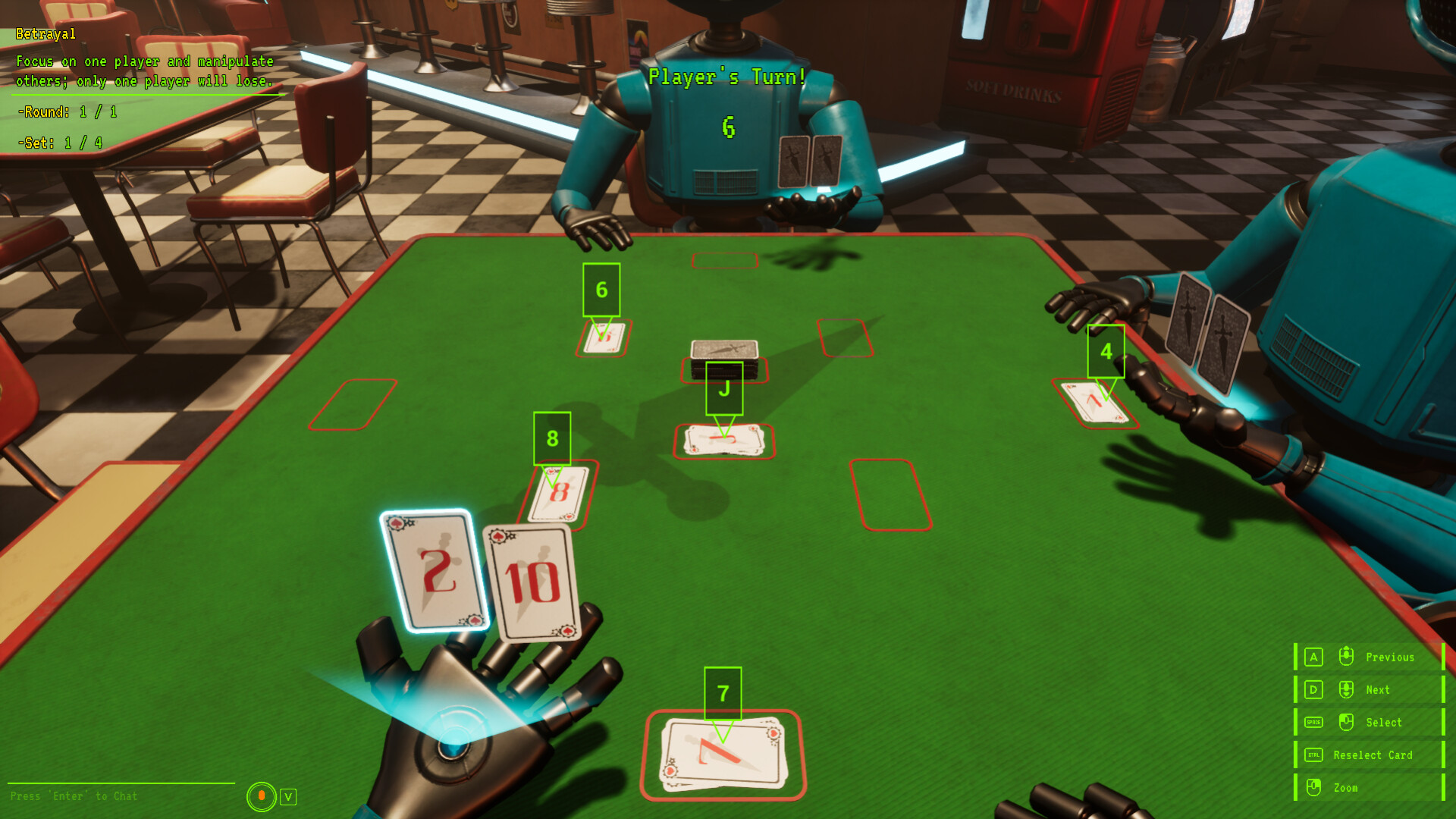 Trust is a luxury. Every card played could betray you, even from the Stab Bots!