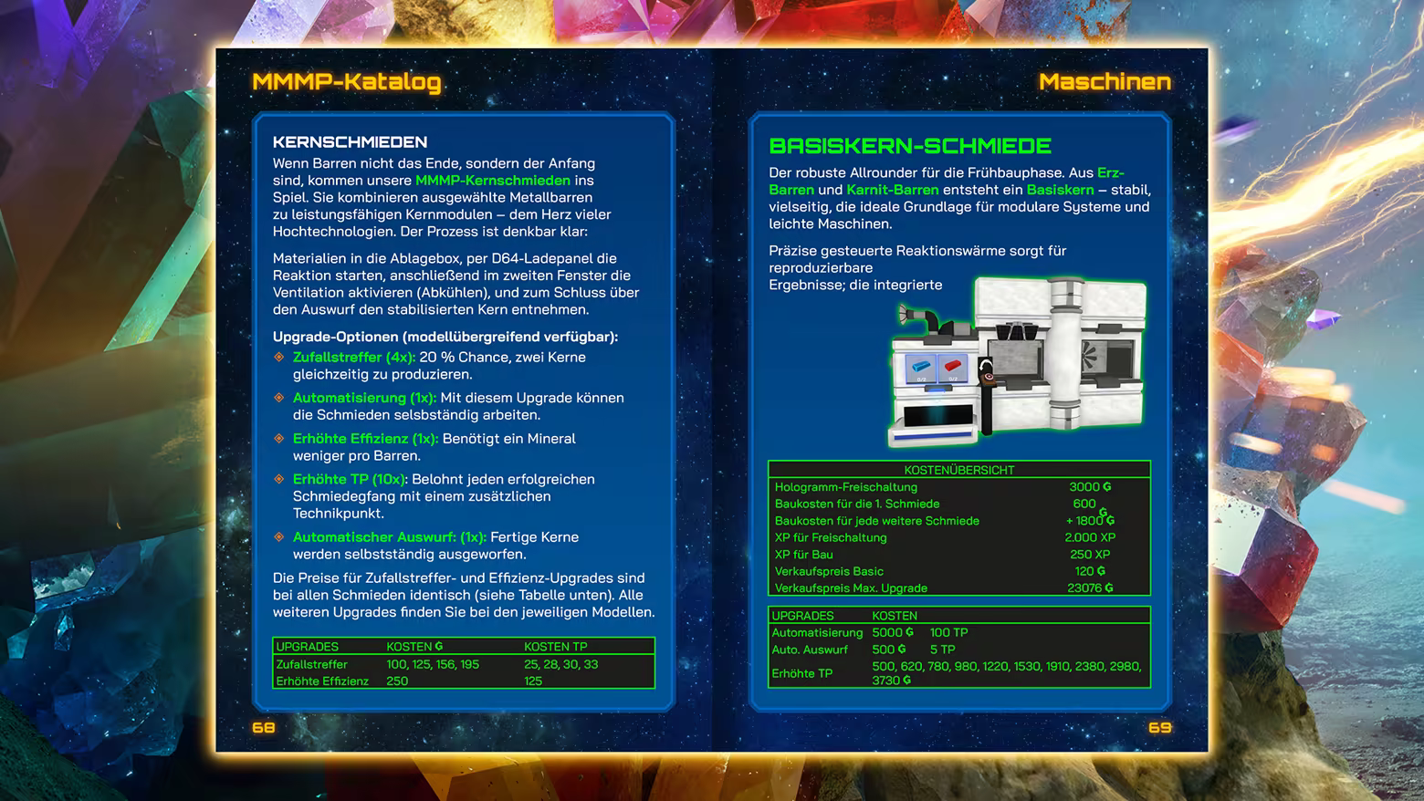 Hier findest du alles, was das Prospektoren-Herz begehrt: vom Tiefenkernbohrer Mk IV über die neuesten Schmelz-O-Tron-Modelle bis hin zu automatisierten Kern-Schmieden.