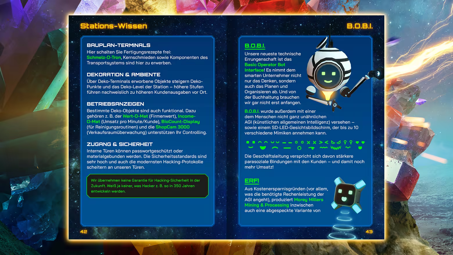 Erfahre, wer die Station einst gebaut hat, warum sie 350 Jahre lang verlassen im All trieb – und was das alles mit den empfindsamen Gefühlschips eines kleinen Roboters namens B.O.B.I. anstellt.