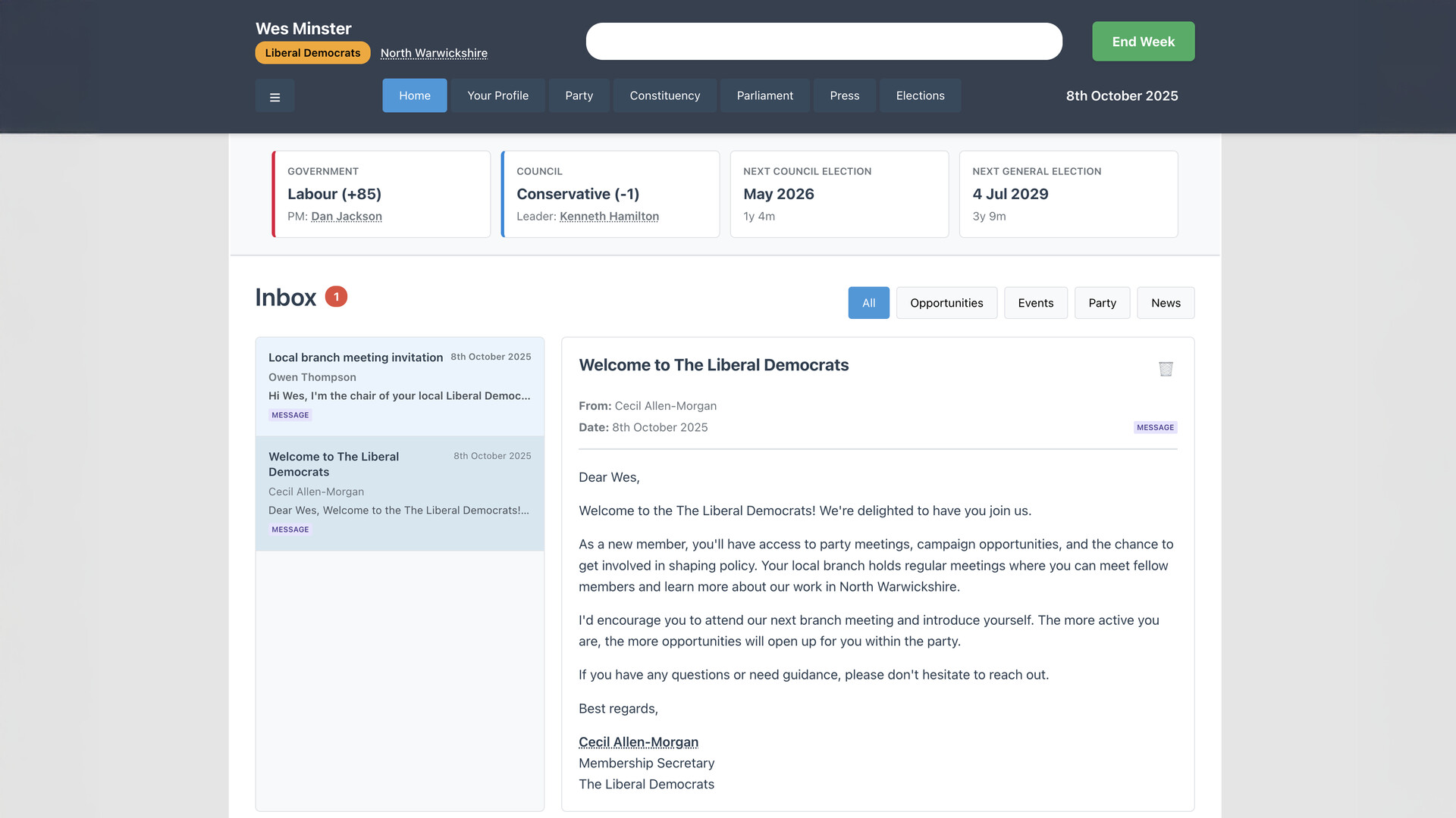 Start as a local councillor. Build your reputation. Climb to Westminster. The simulation responds to what you do, not what the script says should happen.