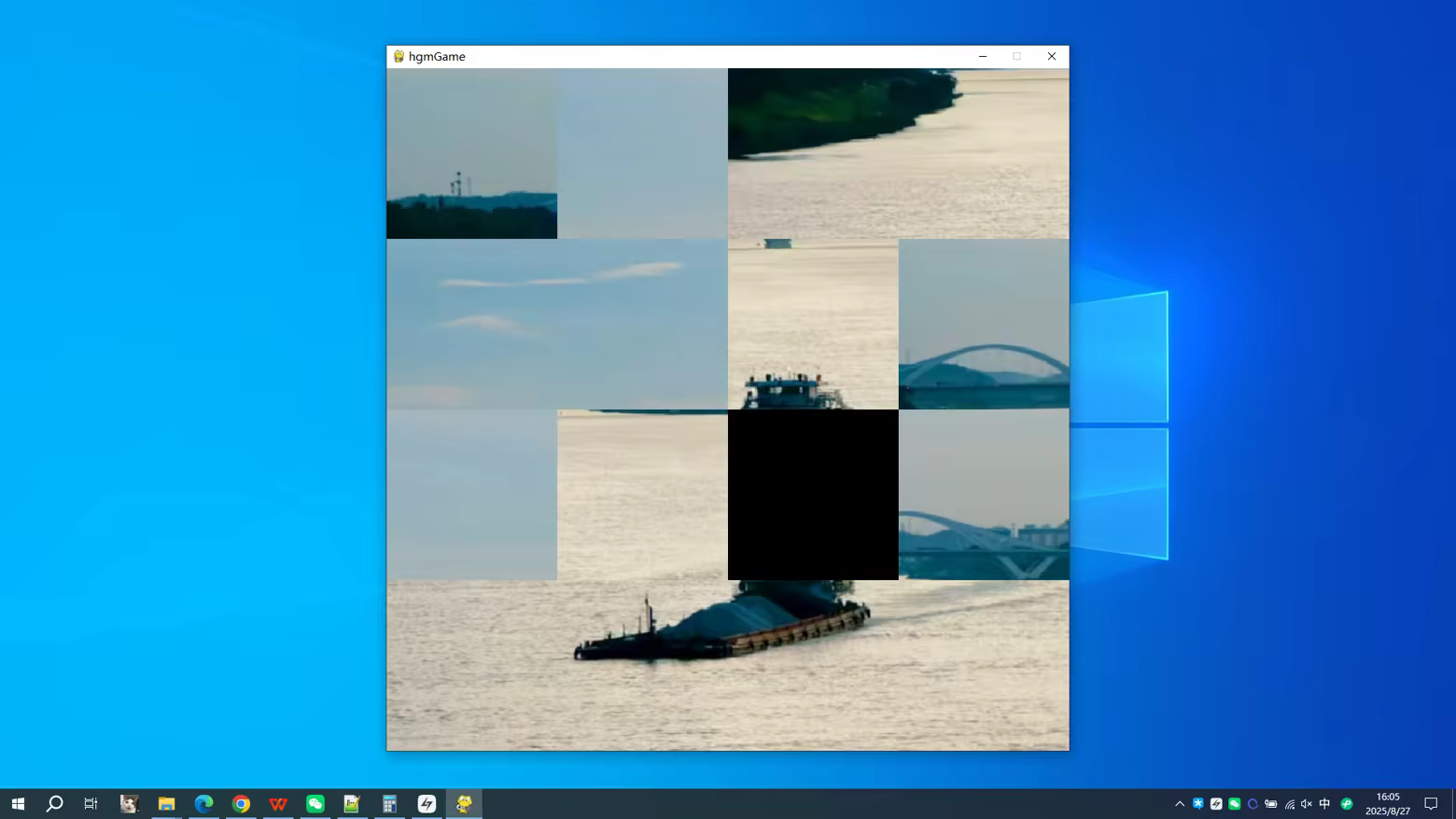 Game steps: Click the left mouse button on the image around the black square, and the image and black square will switch positions. The goal is to assemble all the small images into a complete image. The complete image is as follows: