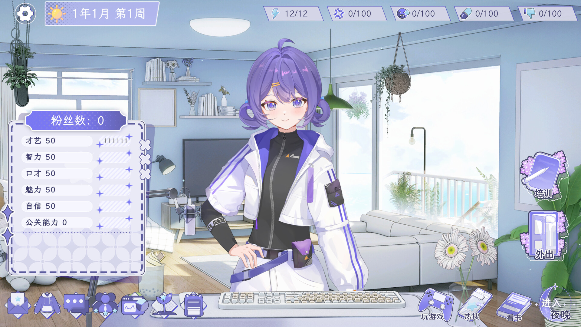 《虹影直播间》是一款由你扮演主播的养成游戏。以三年为周期,将达成1000万粉丝作为游戏的终极目标!你可以选择自己的发展路线,是成为杂谈势、歌势、还是游戏势?你也可以选择全面发展,在多种不同结局之间解锁属于自己的故事!