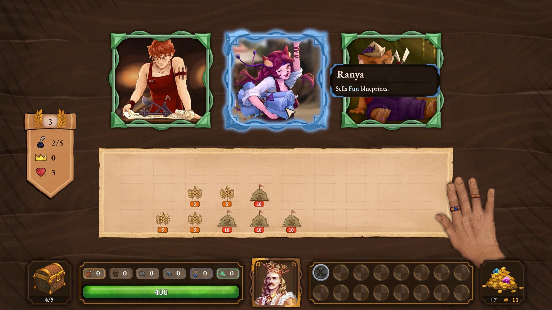 Arrange your buildings carefully on the scroll — each choice will shape your kingdom’s growth for the next decade.