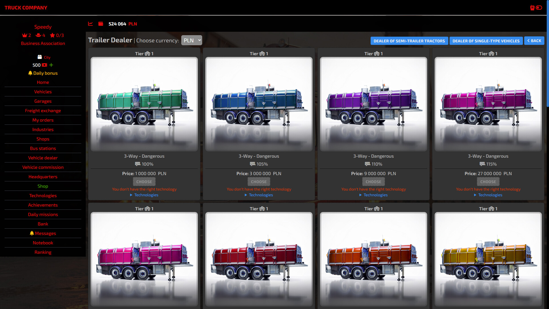 Truck Company is a real-time strategy game in which you and other players strive to gain the widest possible market share for your orders. You start by purchasing your first vehicle and searching for the most profitable orders for it, ensuring your truck operates 24/7 without wasting time on free flights. You also need to take care of your drivers, as a well-rested and experienced driver is key to ensuring your truck completes its tasks quickly and efficiently. Trucks require repairs over time, otherwise their speed decreases. Later, once you earn more money, you can build bus stations or shops to which you will have to deliver goods, either by purchasing them in advance or by producing them in your own factories. The direction of your company depends on you. The game is based on a natural system of supply and demand, so other players influence the profits you earn.