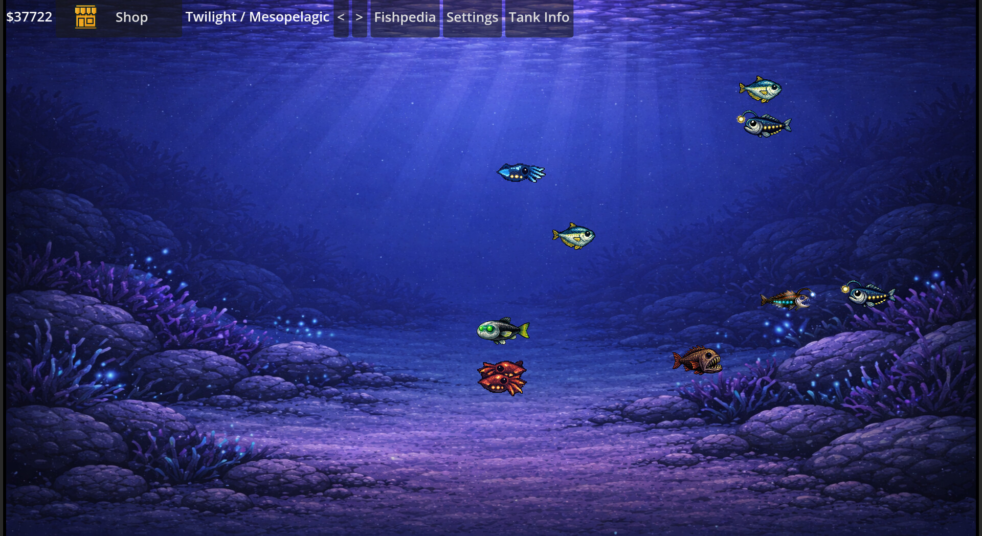 Omniquarium is a relaxing idle aquarium game where you collect and grow over 100 unique species of fish, sea creatures, and aquatic life across 10 beautifully crafted tanks — from a peaceful Nano Freshwater bowl all the way down to the haunting depths of the Twilight Mesopelagic zone.