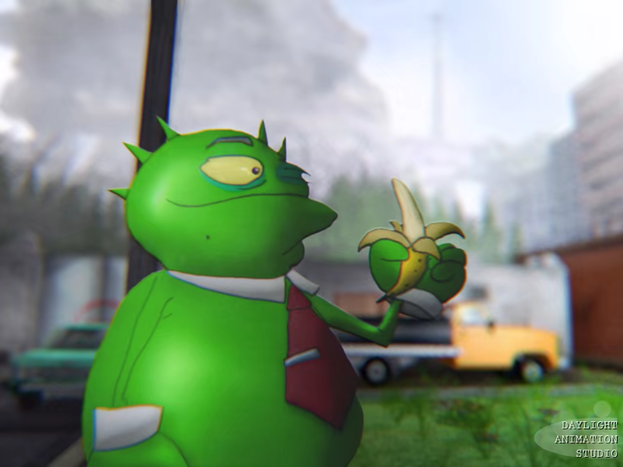 Animated characters are drawn using classical animation. In addition, some clever processing algorithms are applied to them to give them a more dimensional, livelike appearance.