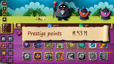 • Power-Boosting Prestige: Unlock the Rebirth system to reset your progress from Stage 1. This strategic sacrifice rewards you with powerful new abilities, permanent Prestige Points, and rare Relics to fuel your next run.
