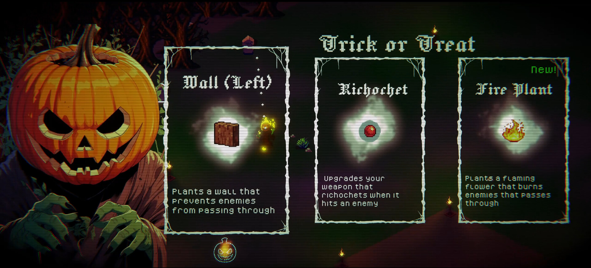 Choose from a rotating set of Halloween monster powers like vampires, witches, werewolves, and ghosts, each granting unique abilities that reshape your build every run. Stack and combine these cursed gifts to create powerful synergies, experiment with distinct playstyles, and push deeper into a Halloween-themed roguelike designed for high replayability.