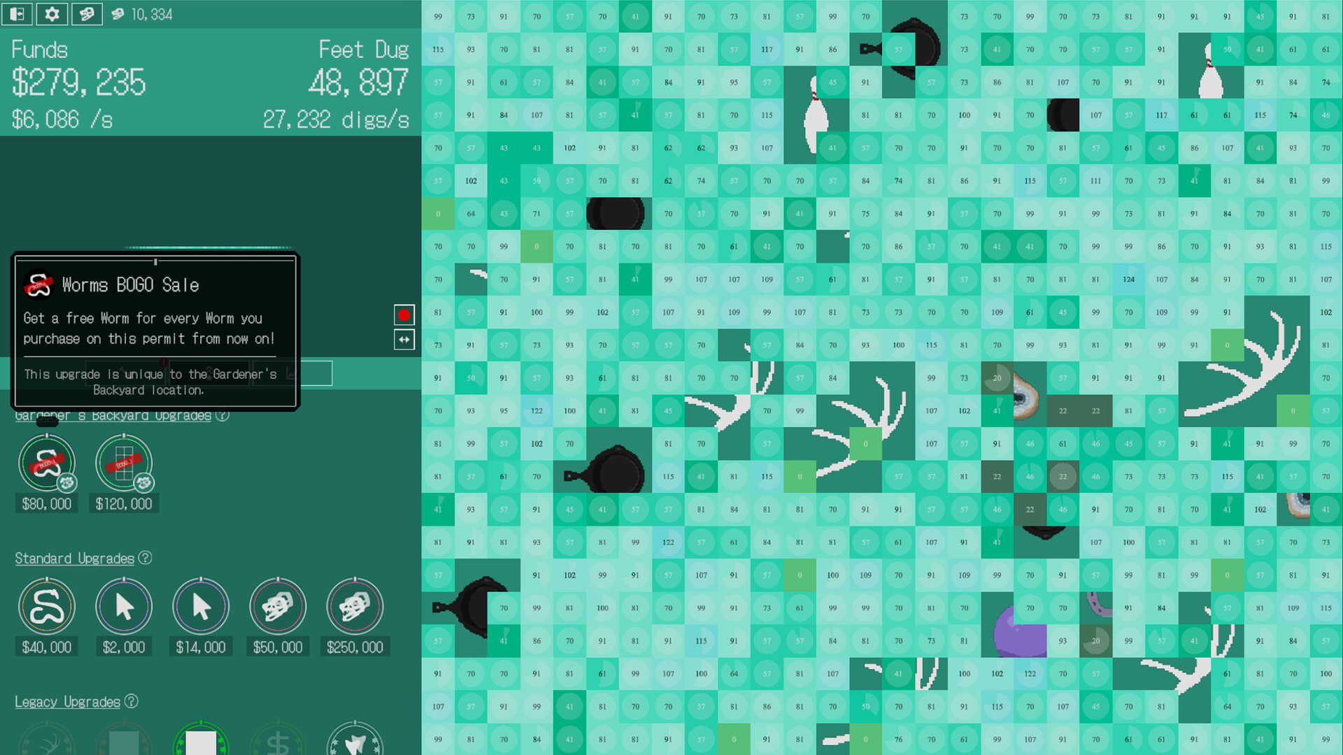 Surprisingly, all of your neighbors are really excited about your hole-digging operation. Some of them have even offered up their backyard as a location for you to dig your hole! You'll be able to choose from multiple different backyard locations each time you start digging a new hole. Each location has a unique set of upgrades that provide different play styles across prestiges.