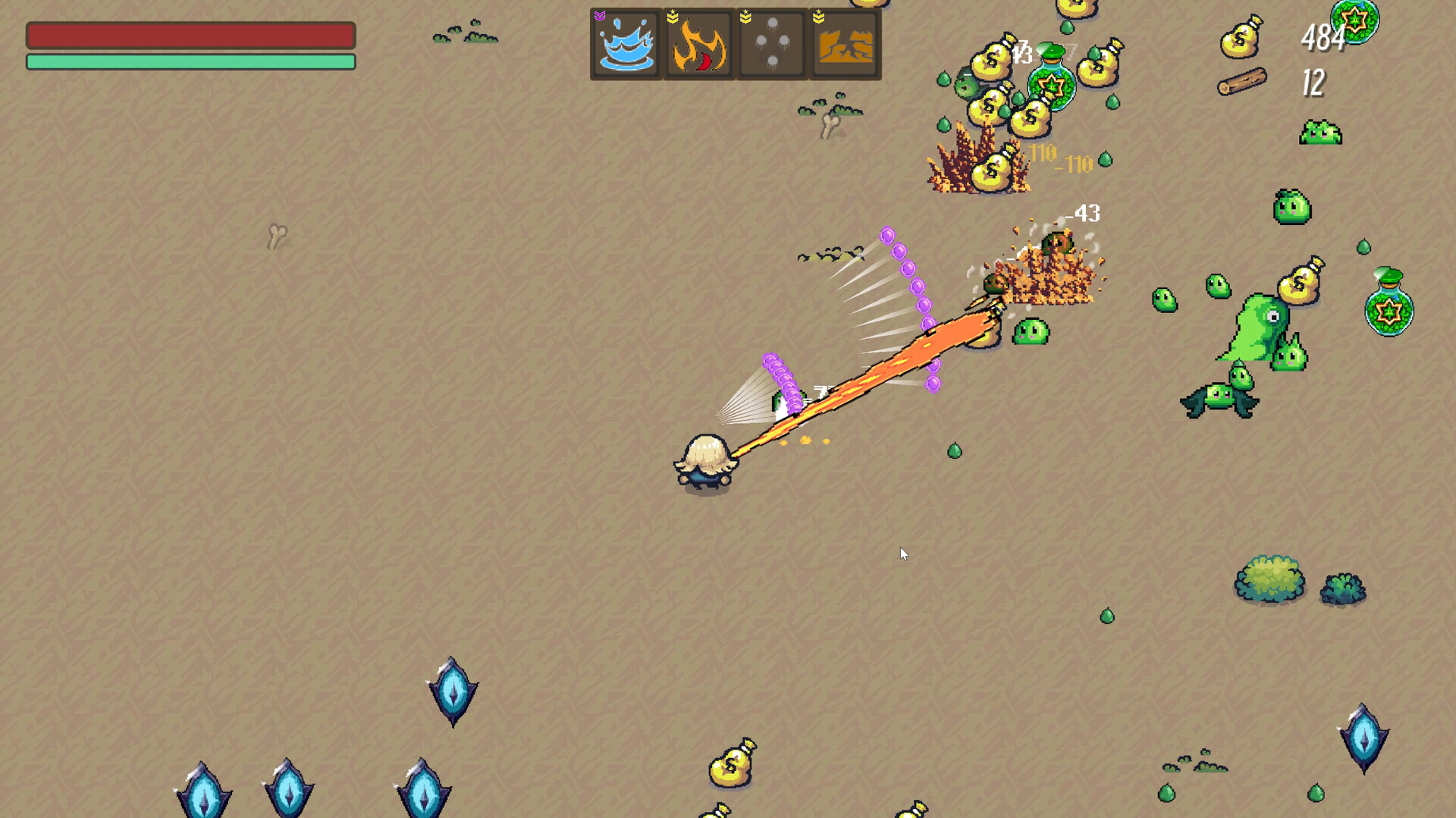 Island Survivor ist ein Top-Down-Roguelike-Shooter. Besorge dir Waffen beim Verkaufsroboter 1211, verschmelze und stern-stufe sie auf – jede Waffe ändert dabei ihr Angriffsmuster. Gleiche Waffen kombinieren, um einzigartige Traits zu aktivieren und Werte zu steigern.