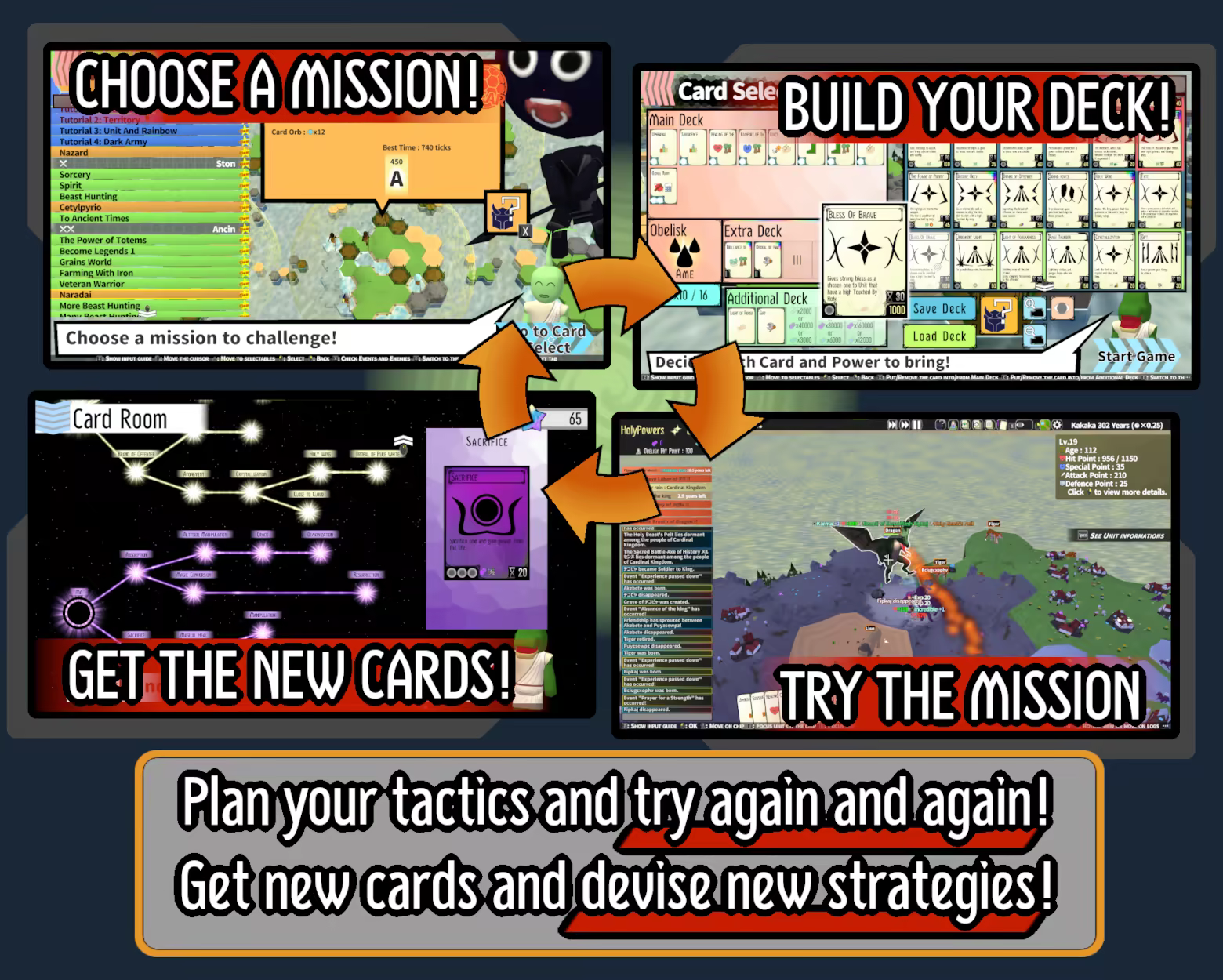 The controls are very simple—just select a card and choose its target! Use your cards to reshape the terrain, grant blessings or impose trials upon the people, and prepare the land for the threats to come!