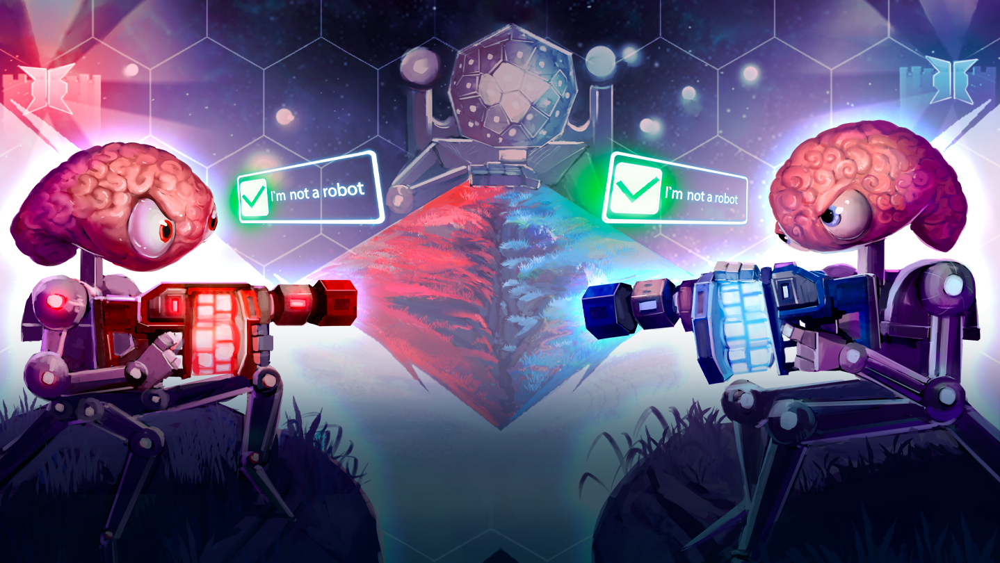 A chaotic PvP first person shooter with fully destructible terrain where you need to solve quick Captchas to reload your guns. Build bridges, dig tunnels, and blow everything up while competing in teams with fellow humans in games of capture the flag for the amusement of your AI overlords.