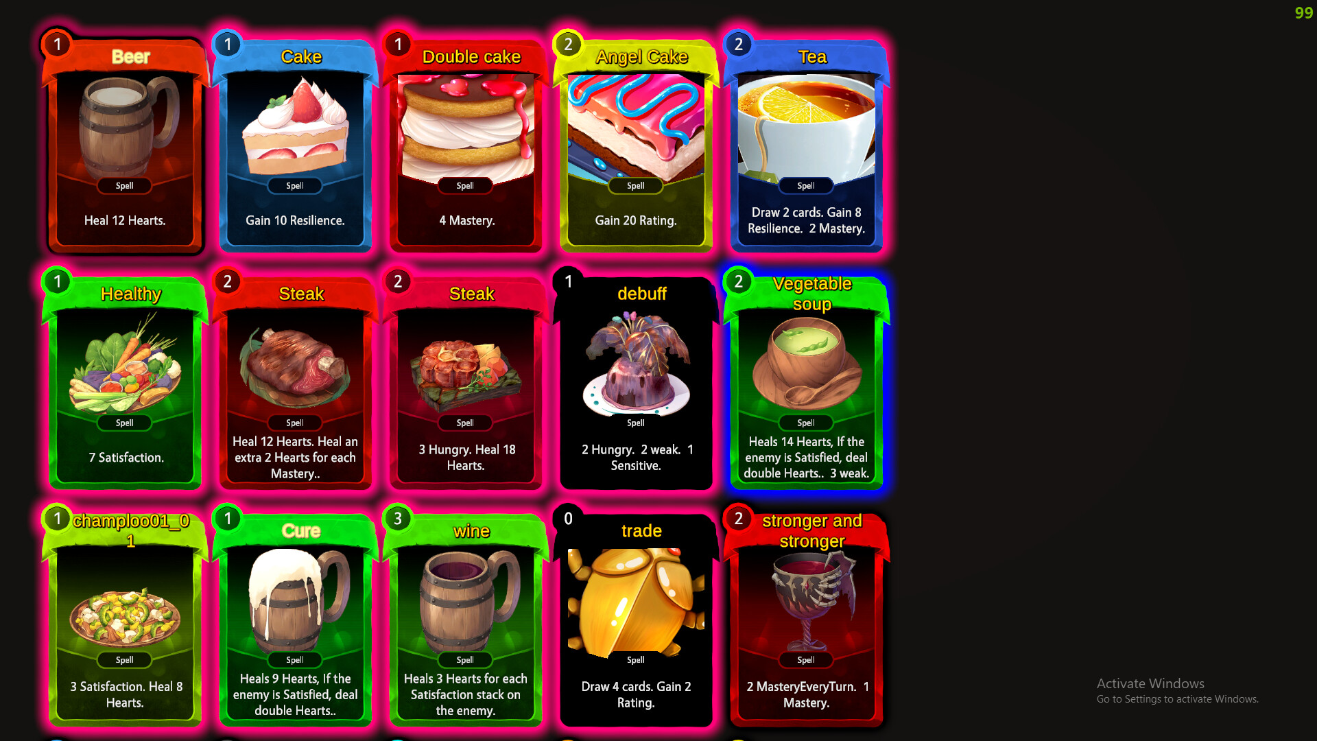 Card types: Sweet, Spicy, refreshing, healthy—each tied to emotions.
