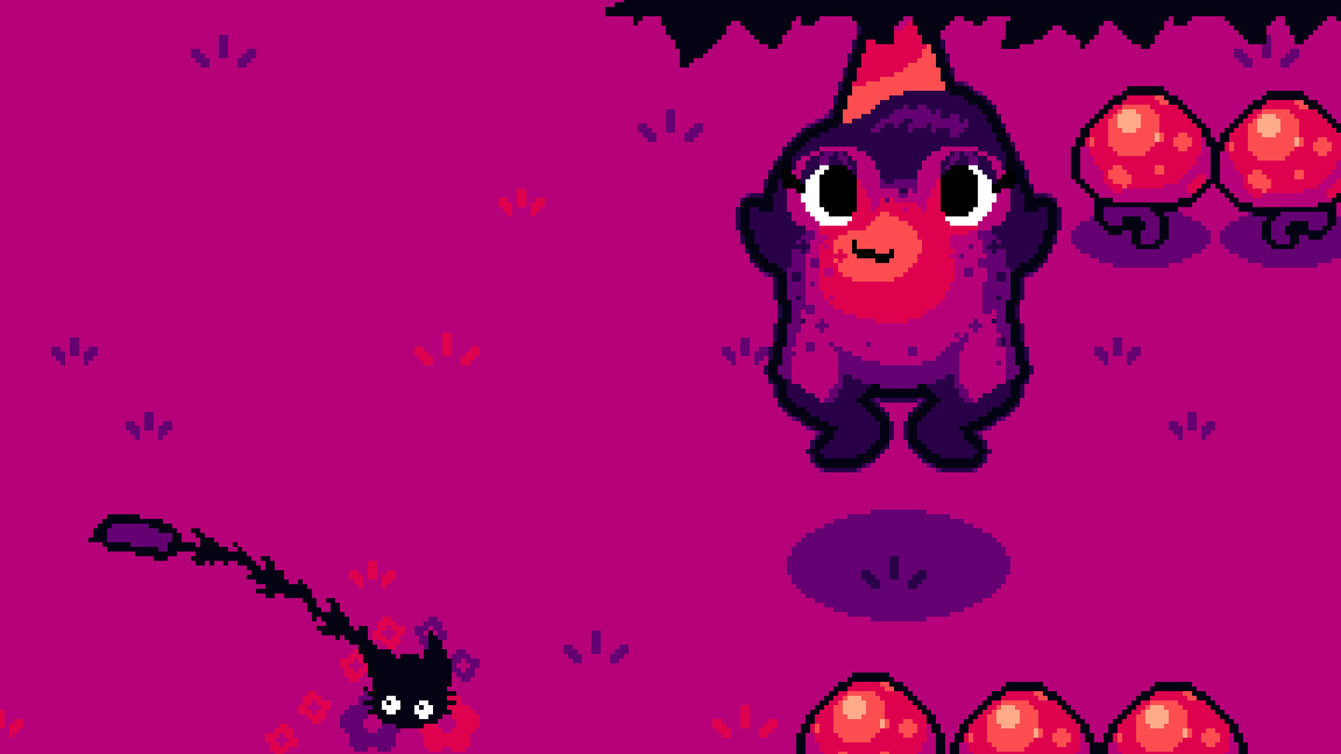 Make your way through randonly assembled rooms filled with all kinds of obstacles, such as urchins, mushrooms, cats and even jellyfishes! Accumulate points after reaching the end of a room to eventually multiply into great ammounts of score! Depending on your chosen items and mightyness. Make it through enough rooms to even visit alternate areas, with their own exclusive obstacles!