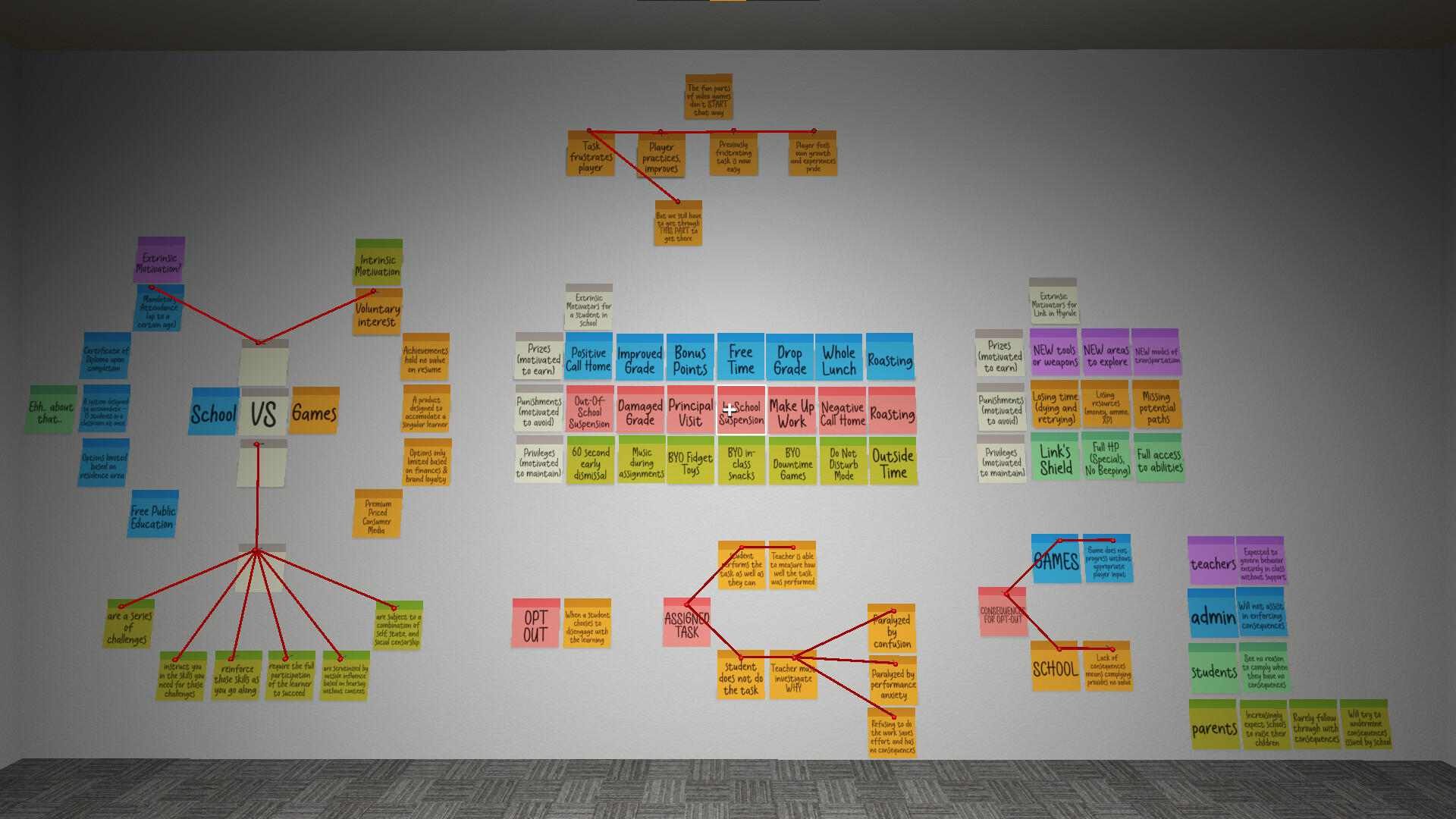 "In it's current state, BrainMess is a VERY barebones mind mapping tool where you can place sticky notes and connect them with strings on the walls, ceiling, and floor of a single room. It is basically a proof of concept."