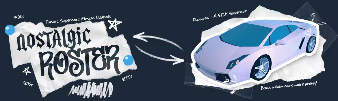Choose from a selection of tuners, supercars and oddballs, inspired by iconic designs from past decades.
