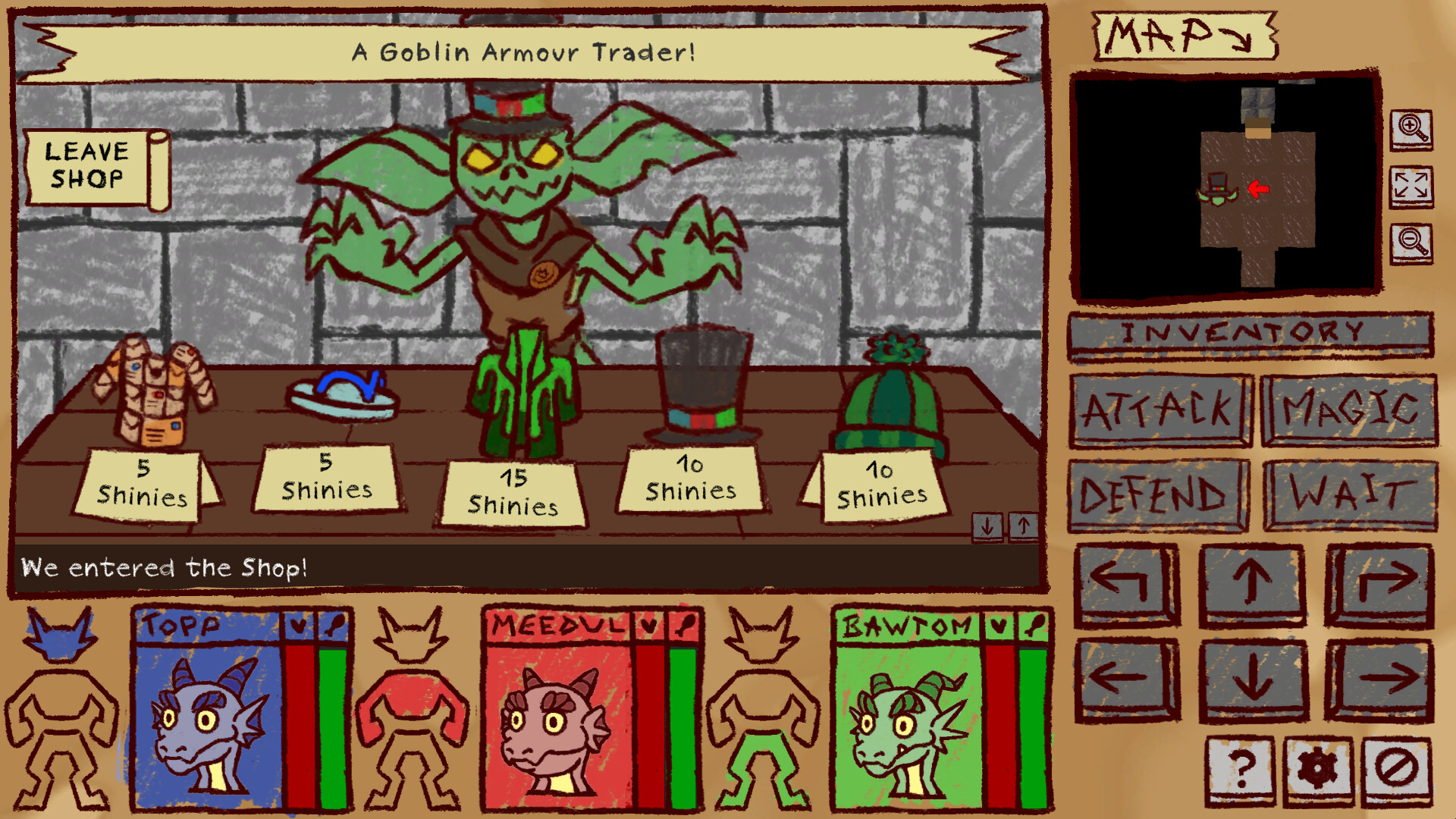 Join three hungry Kobolds (and several Trenchcoats) in a hand-drawn, classical dungeon-crawling adventure to be Great Heroes - but mostly to find Shiny Things and Eat Good Food!