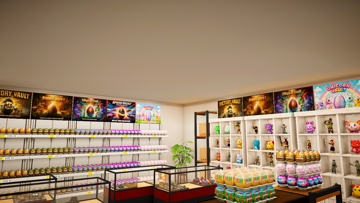 Run your very own mystery egg shop! Stock shelves, manage customers, and grow your business. Every egg hides a surprise, you can sell them sealed, or open them to discover what’s inside? Unbox action figures, trade collectibles, and build themed dioramas to increase their value.