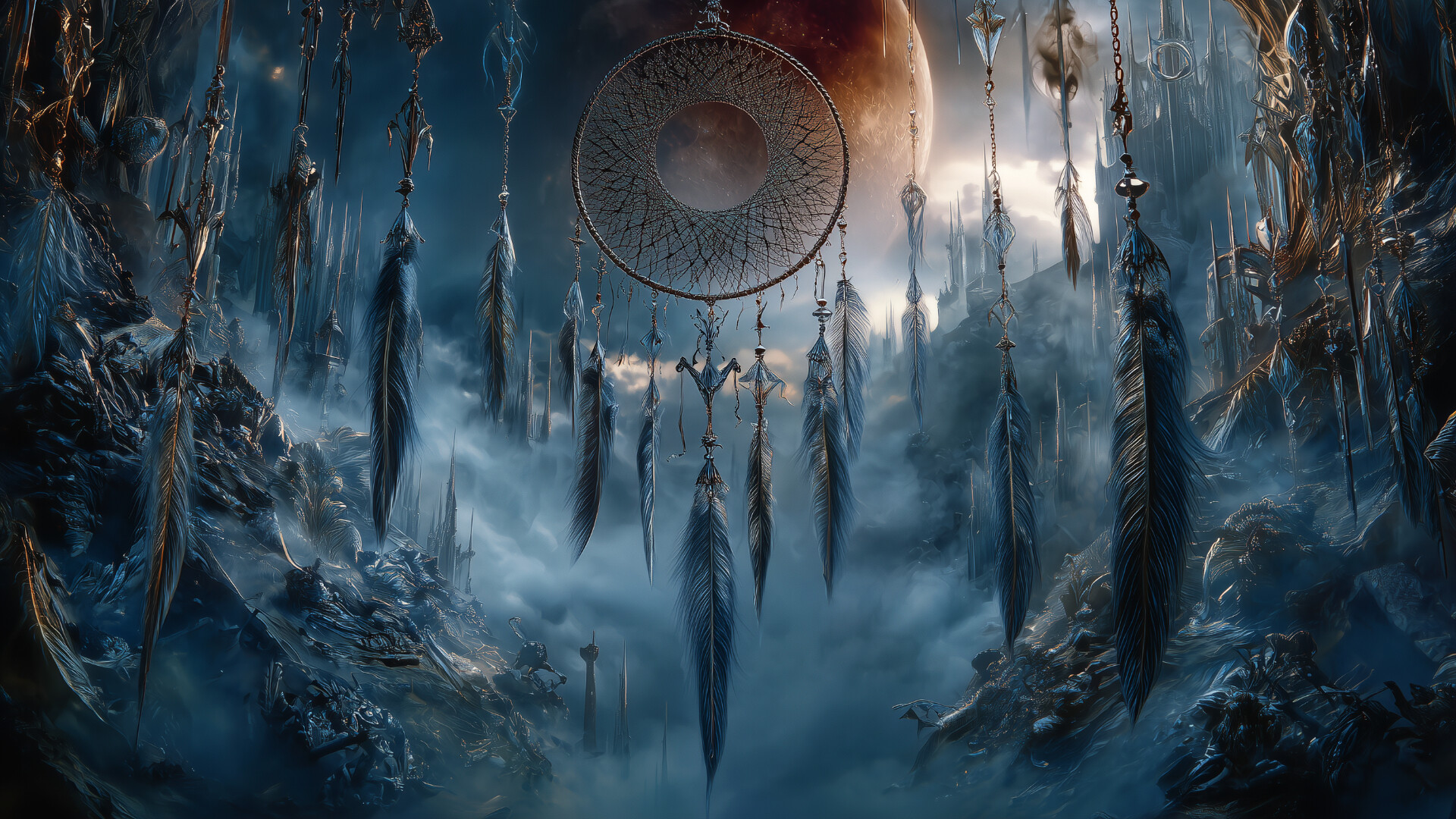 A haunting blend of orchestral ambience, ethereal voices, and ritual drums.