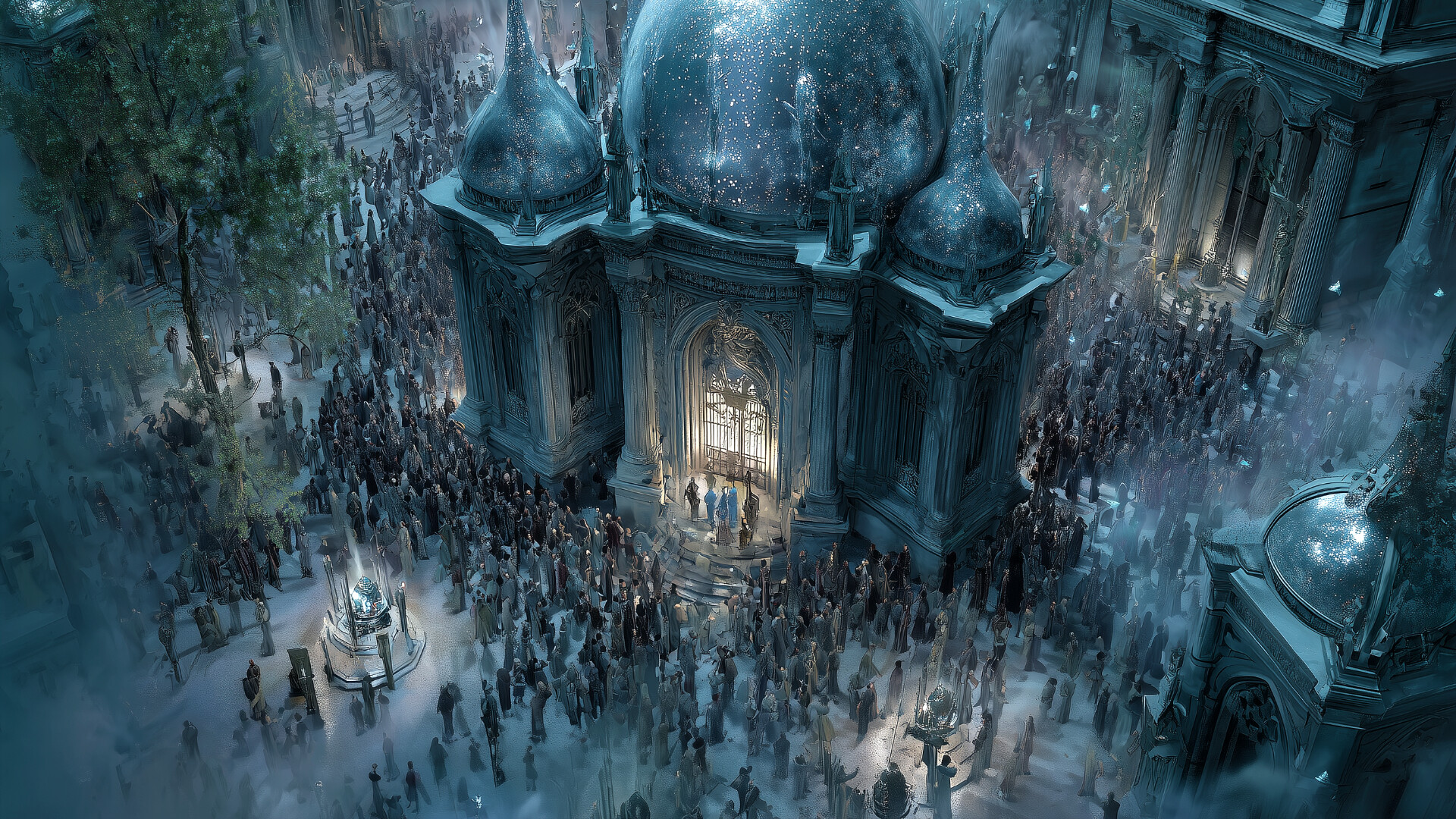 A haunting blend of orchestral ambience, ethereal voices, and ritual drums.