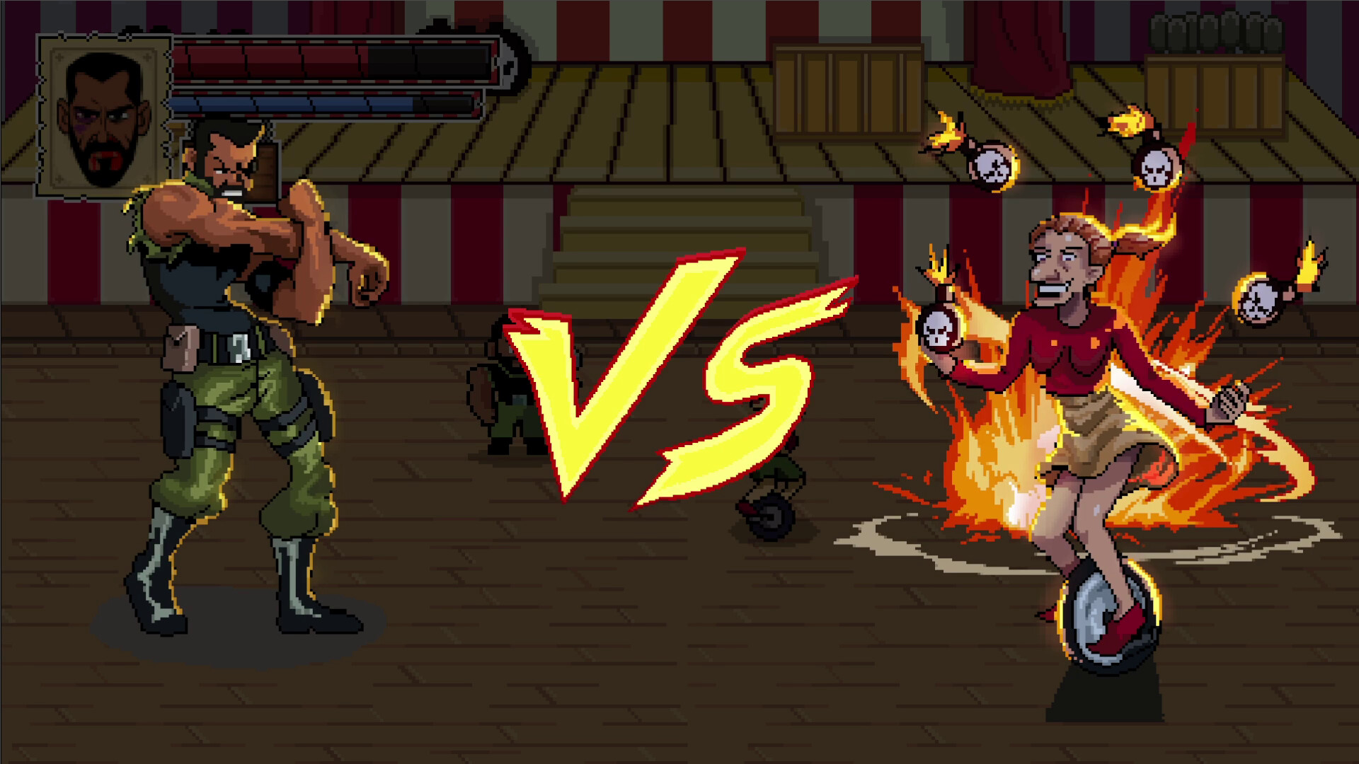 MAGNIFIKOS: Step into the chaotic circus! This retro beat 'em up is your ticket to smashing a bizarre clown posse terrorizing the streets. Wield a variety of weapons and items to fight robot-zombie-clowns and creatures even more grotesque.