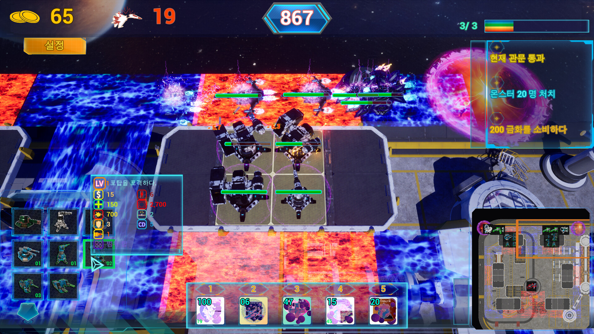 끝없는 우주의 깊은 곳에서 적군이 당신의 기지를 향해 몰려옵니다. 사령관으로서 제한된 공간과 자원을 활용해 방어 시설을 건설하고 업그레이드하며, 끊임없이 밀려오는 적의 물결을 막아내야 합니다.