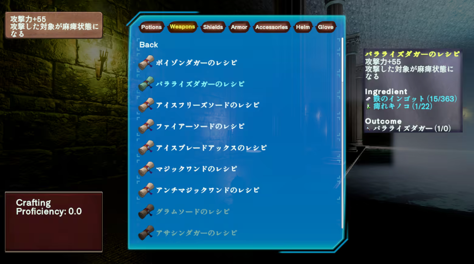 ・戦闘ではお金やポーションだけでなく原料アイテムも手に入れることが出来、それを元により強力な装備や特別なアイテムを作成することが出来ます。