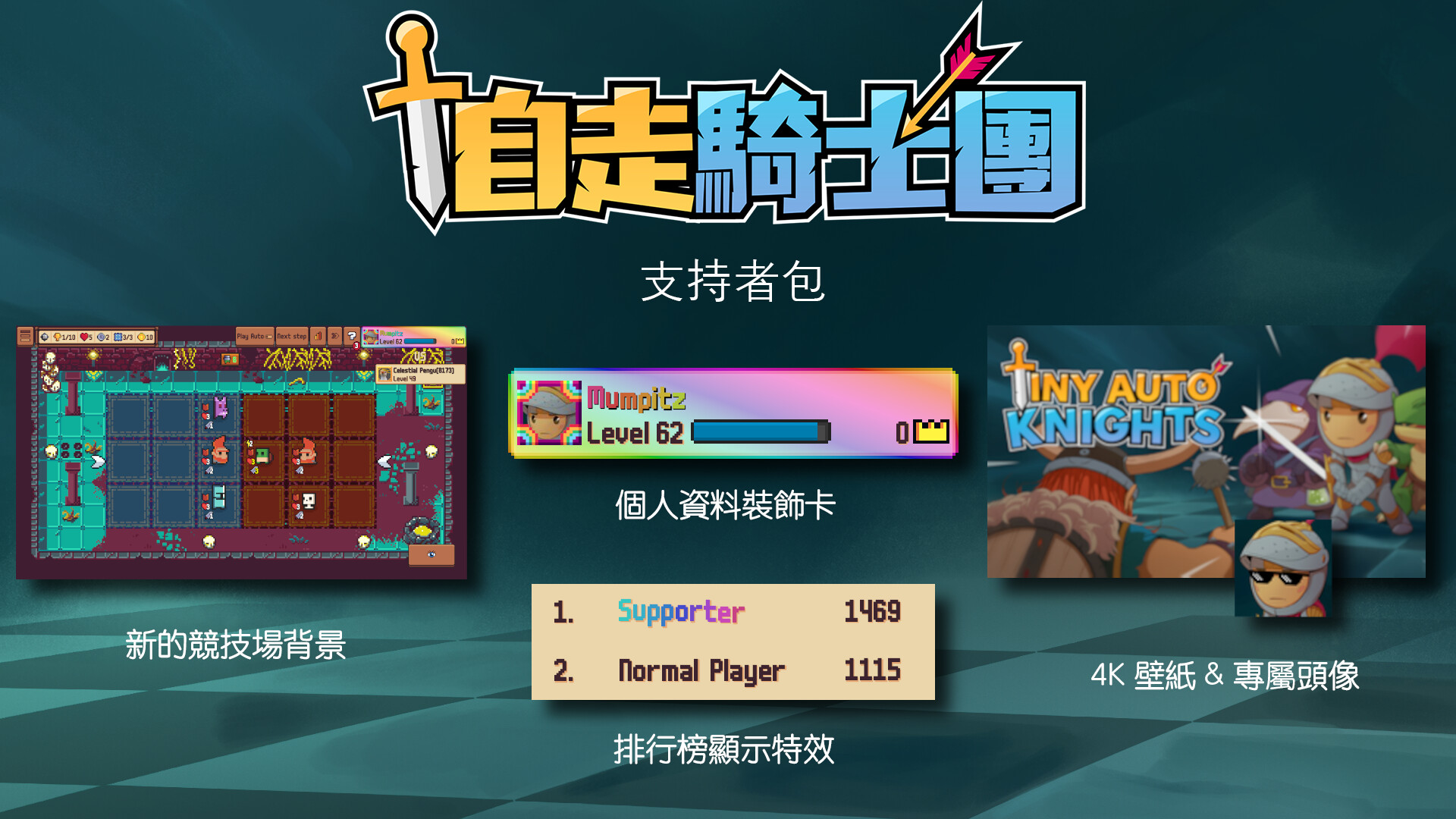 這是一份專為熱愛並想支持《自走騎士團》的玩家準備的特別禮包。購買此禮包,您不僅能獲得獨家內容,還能為《自走騎士團》的後續開發提供寶貴支持!
