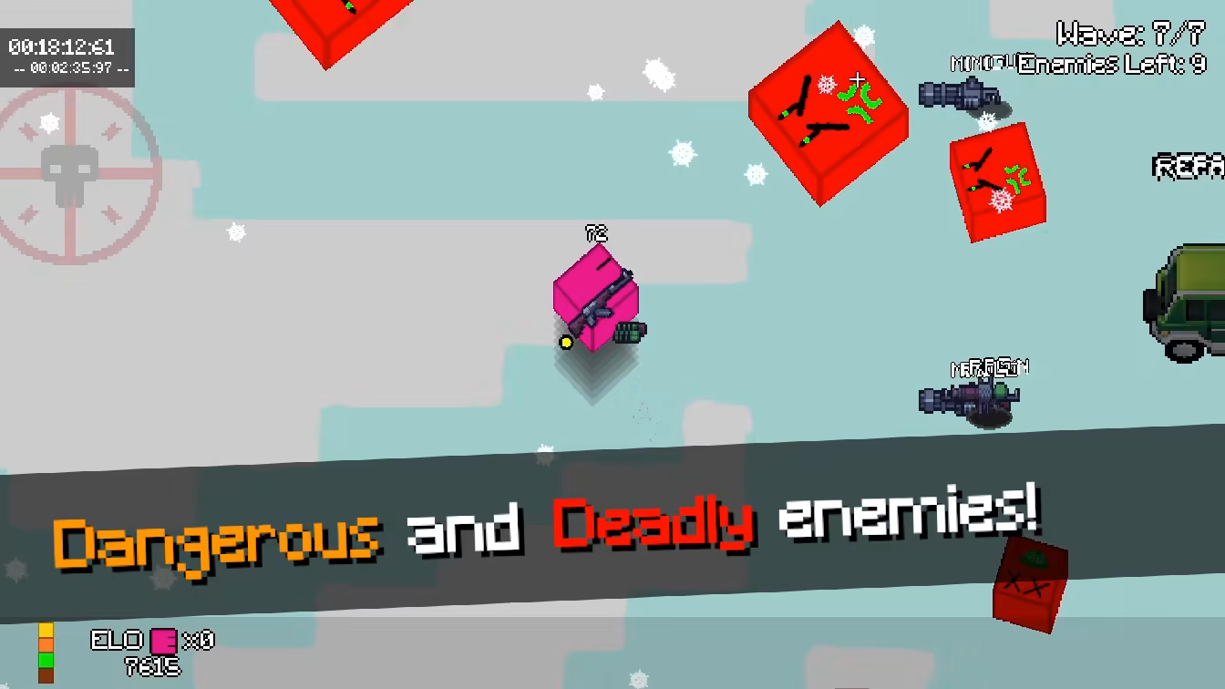 As you go around the CUBE-ISH world you will encounter many unique biomes that the evil BOX-BOSS has turned into the bases for you LIBERATE! Make sure you rescue the prisoners and civilians that have gotten mixed up in this crazy world of bullets and dangerous enemies. Try to take advantage of breakable cover to get the edge on the BOX-BOSS's minions of DOOM.