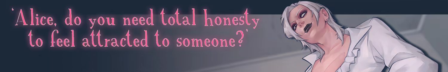 Your choices will shape Alice’s personality, how she copes with her trauma, and the nature of her relationship with the enigmatic entity known as Dinah. Are they a romantic salvation… or a dangerous escape from reality?
