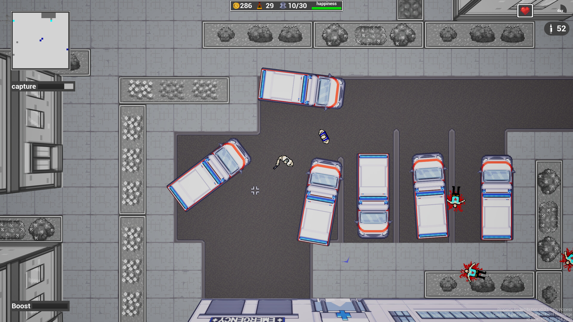 Property Redistribution is a brutal action game with a tactical component. Defeat enemies with the help of your minions, capturing districts and taking over your opponents' businesses.