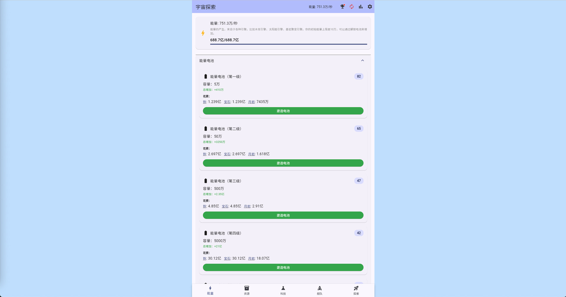 《宇宙探索(Universe Exploration)》是一款融合放置与策略要素的太空文字放置游戏。玩家将从太阳系出发,收集资源、建造机器、研发科技,逐步扩展版图,从资源采集迈向太空战争。