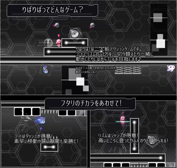 このゲームはコードとリズムという2人の女の子を操作して、ゲーム内のプログラム世界を縦横無尽に駆け巡り、