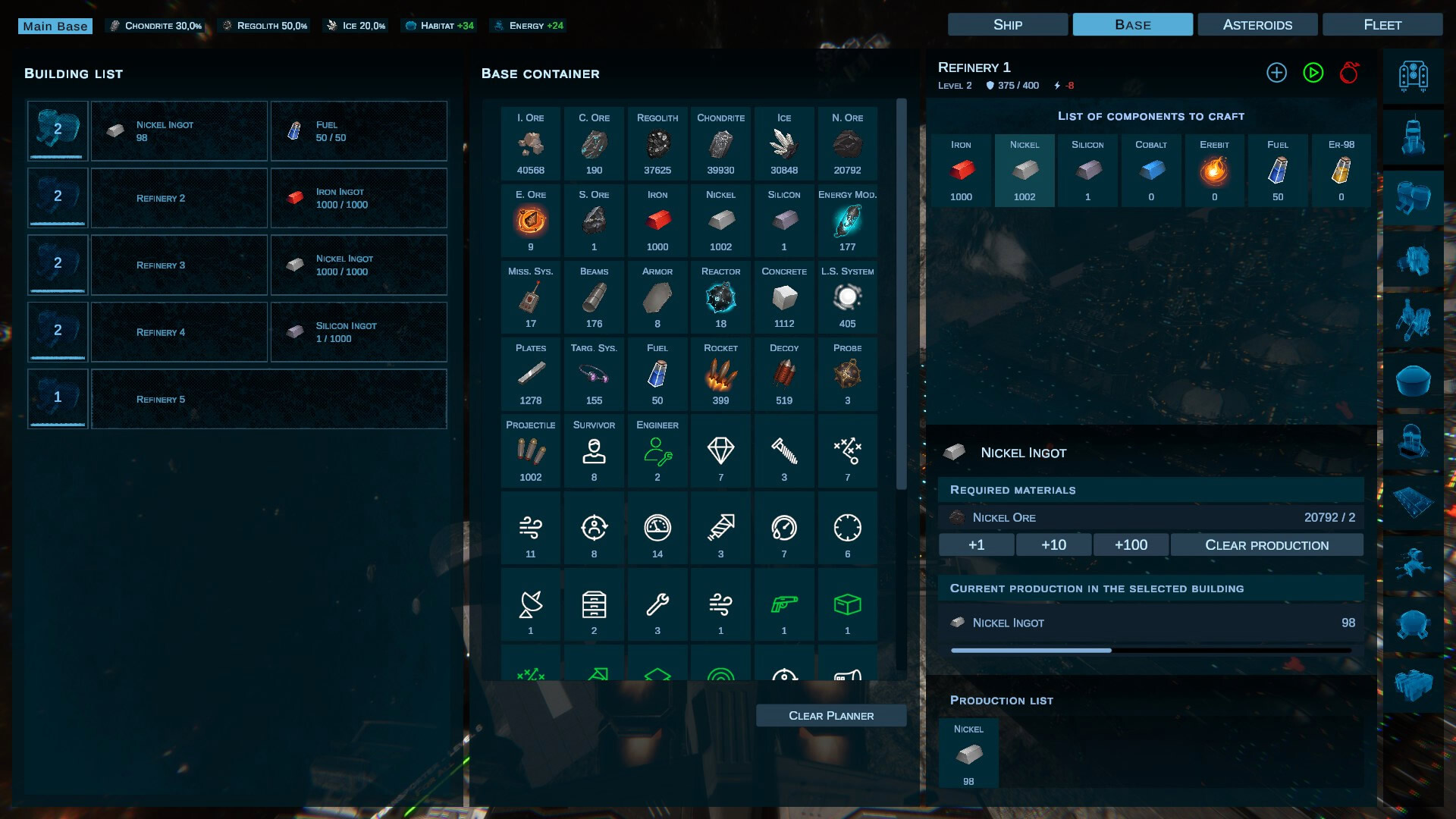 Over time, you can build a self-sufficient production network that supports further colonization and the growth of your base.