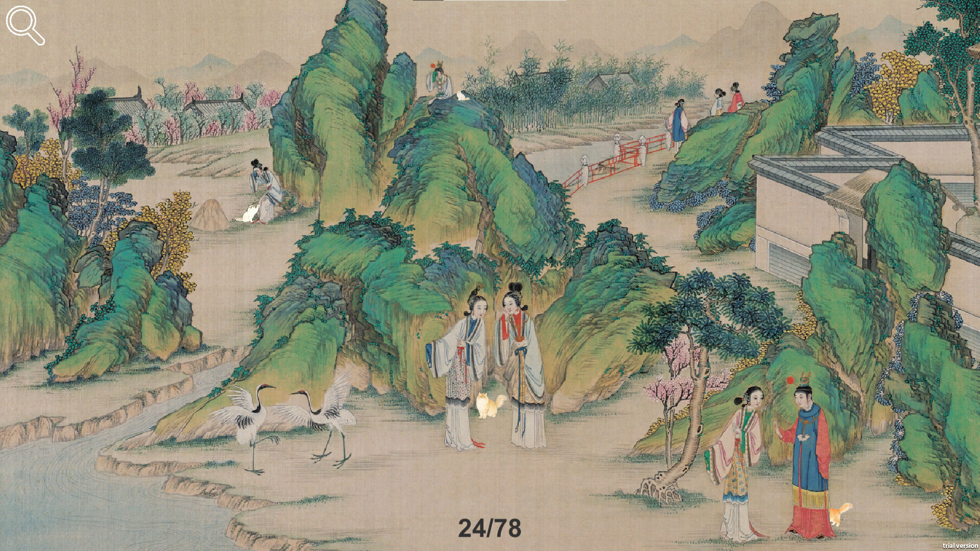 You will search for the kittens hiding in various places within the painting of *Dream of the Red Chamber*. They might be hiding behind pavilions and towers, among artificial hills and flowers, or perhaps mimicking the amusing poses of the characters in the painting.