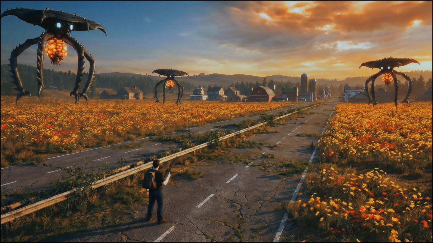 The world you knew is gone. A sudden collapse left a once-bustling town abandoned, communication dead, and supplies dwindling. Strange sounds echo through empty streets, and vague shapes patrol the night. This isn’t a normal disaster. Something has landed.